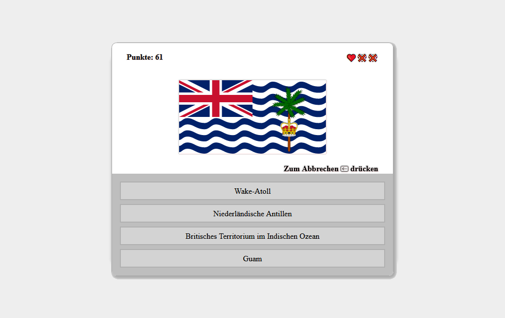 • 1 Flagge - Hier wird die Flagge mit vier Namen als Antwortmöglichkleiten vorgegeben