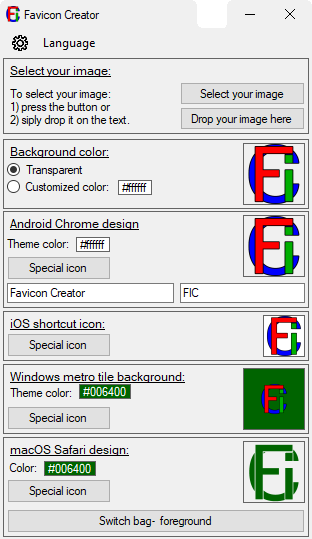 The Favicon Creator (FIC) is a tool for Webpage developers. It allows you to create your Favicons for own html files and webpages.